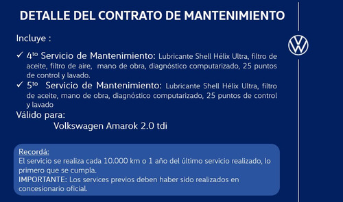 Contrato de Mantenimiento 4° y 5° servicio Amarok Volkswagen